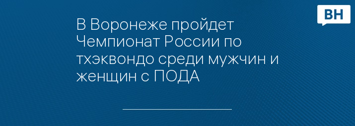 В Воронеже пройдет Чемпионат России по тхэквондо среди мужчин и женщин с ПОДА