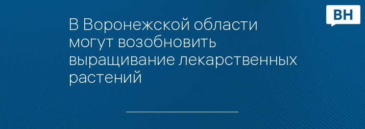 В Воронежской области, по мнению учёных, качество лекарственного сырья высокое. Травы отличаются от растений в других регионах. Поэтому здесь есть все необходимые условия для возобновления культивирования лекарственных растений.
