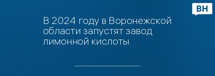 В 2024 году в Воронежской области запустят завод лимонной кислоты