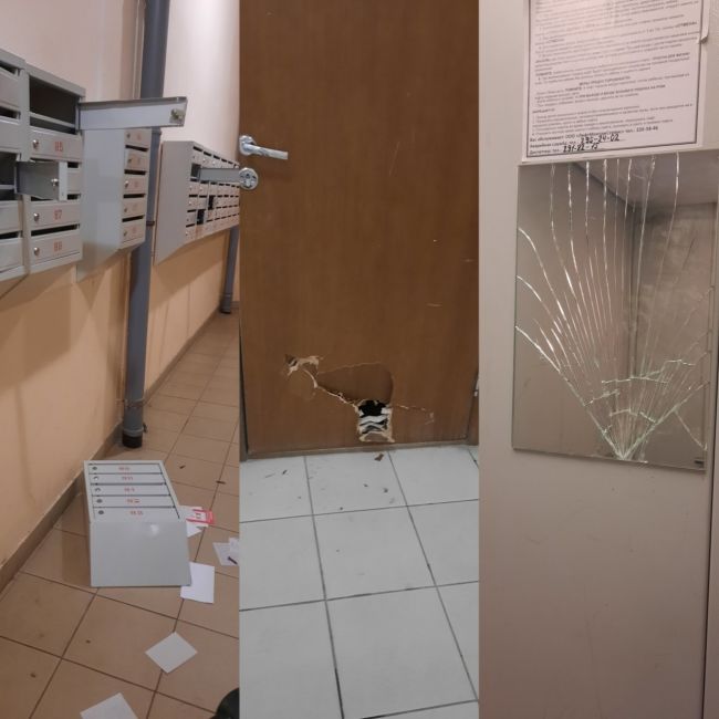 По словам обеспокоенных соседей, он выбежал в одной толстовке с надписью "666" и бегал с голым задом, разметал подушки и полотенца на одном из этажей. Было похоже, что человек находится в состоянии измененного сознания. Ногой вышиб деревянную дверь, разбил зеркало в лифте и разгромил почтовые ящики, некоторые скинув на пол. Несколько раз выбегал из подъезда и возвращался.