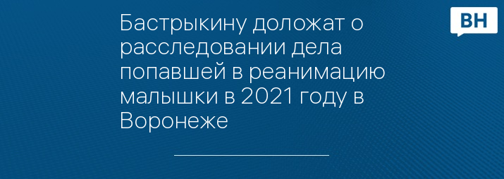 Бастрыкину доложат о расследовании дела попавшей в реанимацию малышки в 2021 году в Воронеже
