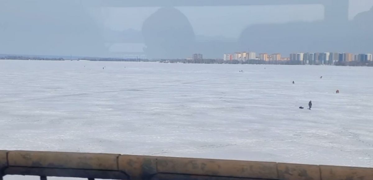 Воронежские рыбаки продолжают ловить рыбу на тонком льду водохранилища