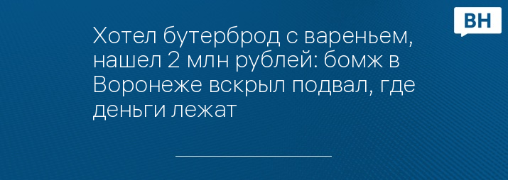 Хотел бутерброд с вареньем, нашел 2 млн рублей: бомж в Воронеже вскрыл подвал, где деньги лежат