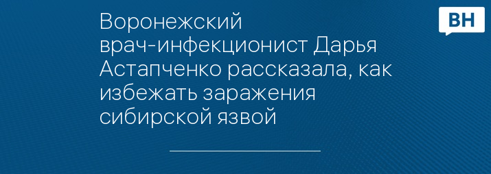 Воронежский врач-инфекционист Дарья Астапченко рассказала, как избежать заражения сибирской язвой