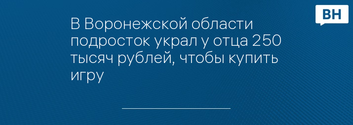 В Воронежской области подросток украл у отца 250 тысяч рублей, чтобы купить игру