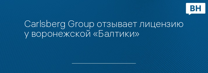 Датская компания Carlsberg Group отзывает лицензию у компании «Балтика» и проинформировала ее руководство об этом. Об этом сообщает "Бизнес журнал" со ссылкой на пресс-службу компании. Один из заводов расположен на территории Воронежа.