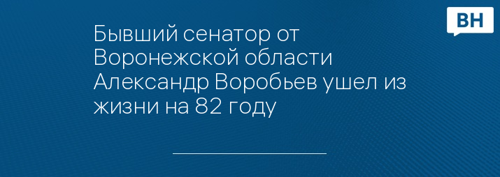 Бывший сенатор от Воронежской области, депутат муниципального совета Воронежа Александр Воробьев, ушел из жизни на 82 году. Об этом сообщили в пресс-службе Воронежской городской Думы в среду, 1 ноября.