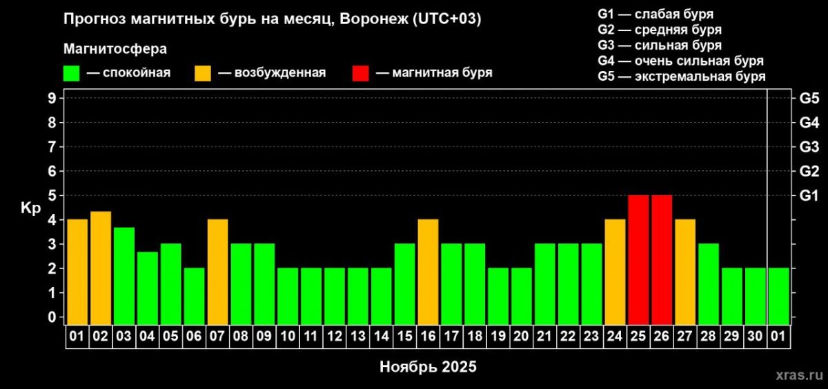 Магнитные бури накроют Воронежскую область в конце ноября