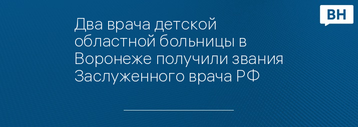 Два врача детской областной больницы в Воронеже получили звания Заслуженного врача РФ