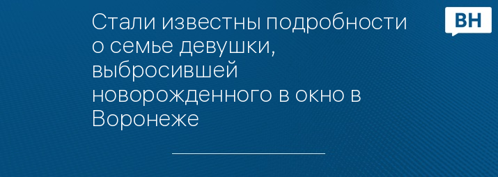 Стали известны подробности о семье девушки, выбросившей новорожденного в окно в Воронеже