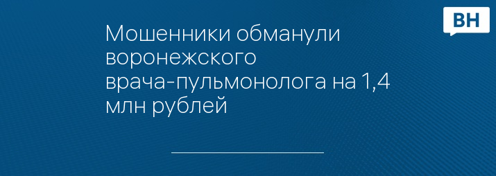 Мошенники обманули воронежского врача-пульмонолога на 1,4 млн рублей
