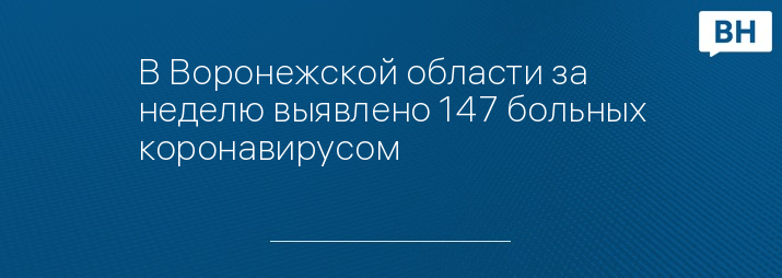 В Воронежской области за неделю выявлено 147 больных коронавирусом