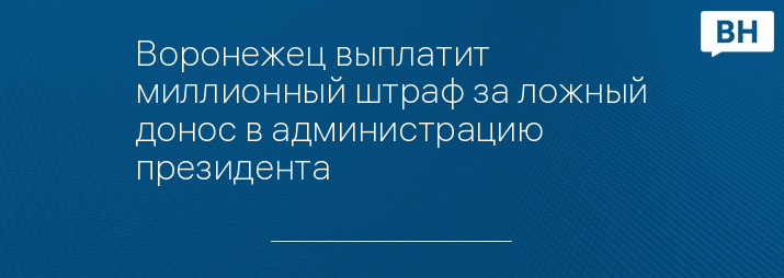 Воронежец выплатит миллионный штраф за ложный донос в администрацию президента