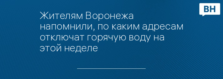 Жителям Воронежа напомнили, по каким адресам отключат горячую воду на этой неделе