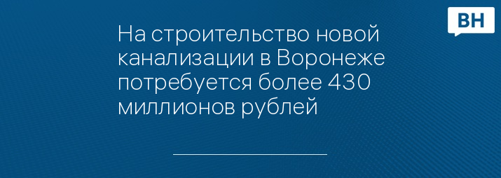 На строительство новой канализации в Воронеже потребуется более 430 миллионов рублей