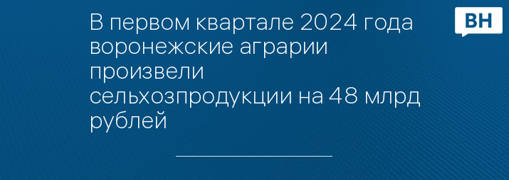 В первом квартале 2024 года воронежские аграрии произвели сельхозпродукции на 48 млрд рублей