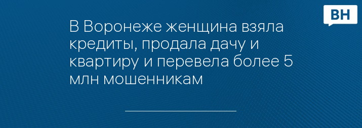 В Воронеже женщина взяла кредиты, продала дачу и квартиру и перевела более 5 млн мошенникам