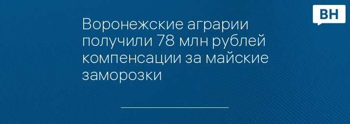 По данным на 1 июля, страховые компании выплатили российским сельхозпроизводителям, пострадавшим из-за майских заморозков, почти 1,1 млрд рублей. Воронежская область же за убитый заморозками будущий урожай получила 78 млн рублей компенсации.