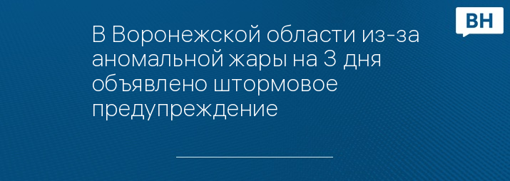 В Воронежской области из-за аномальной жары на 3 дня объявлено штормовое предупреждение