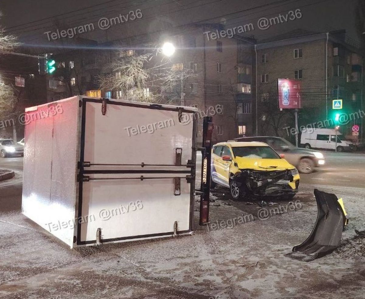 В Воронеже грузовая Газель опрокинулась при столкновении с такси