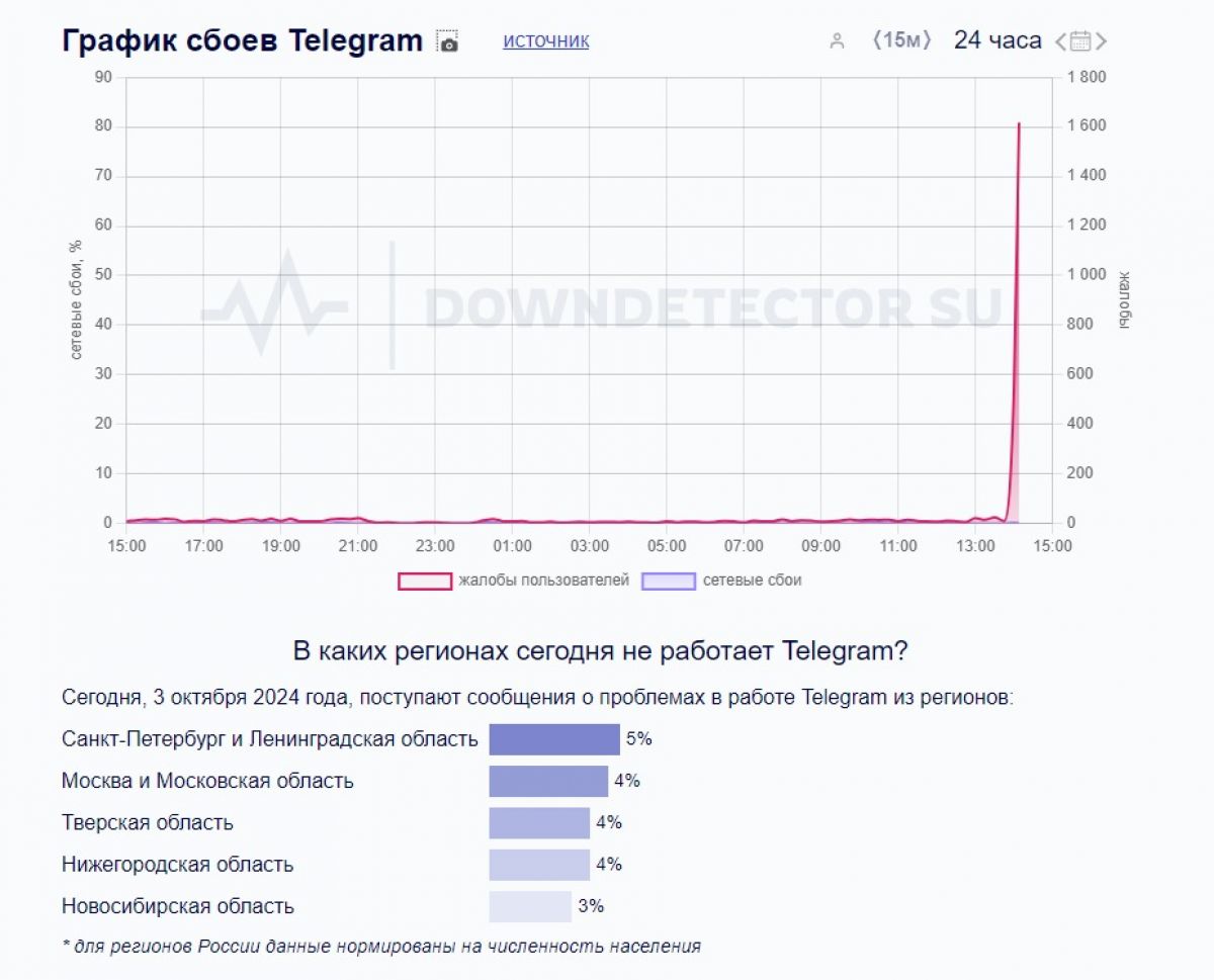 По данным сервиса Downdeyector, чаще говорят о сбое в Санкт-Петербурге и Московской области.