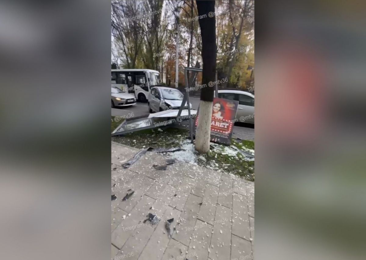 Машина разбила стеклянную рекламную конструкцию в центре Воронежа