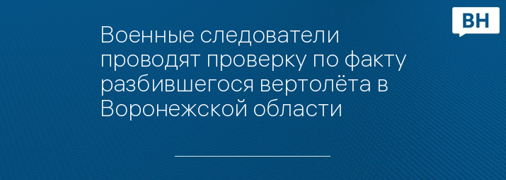 Военные следователи проводят проверку по факту разбившегося вертолёта в Воронежской области