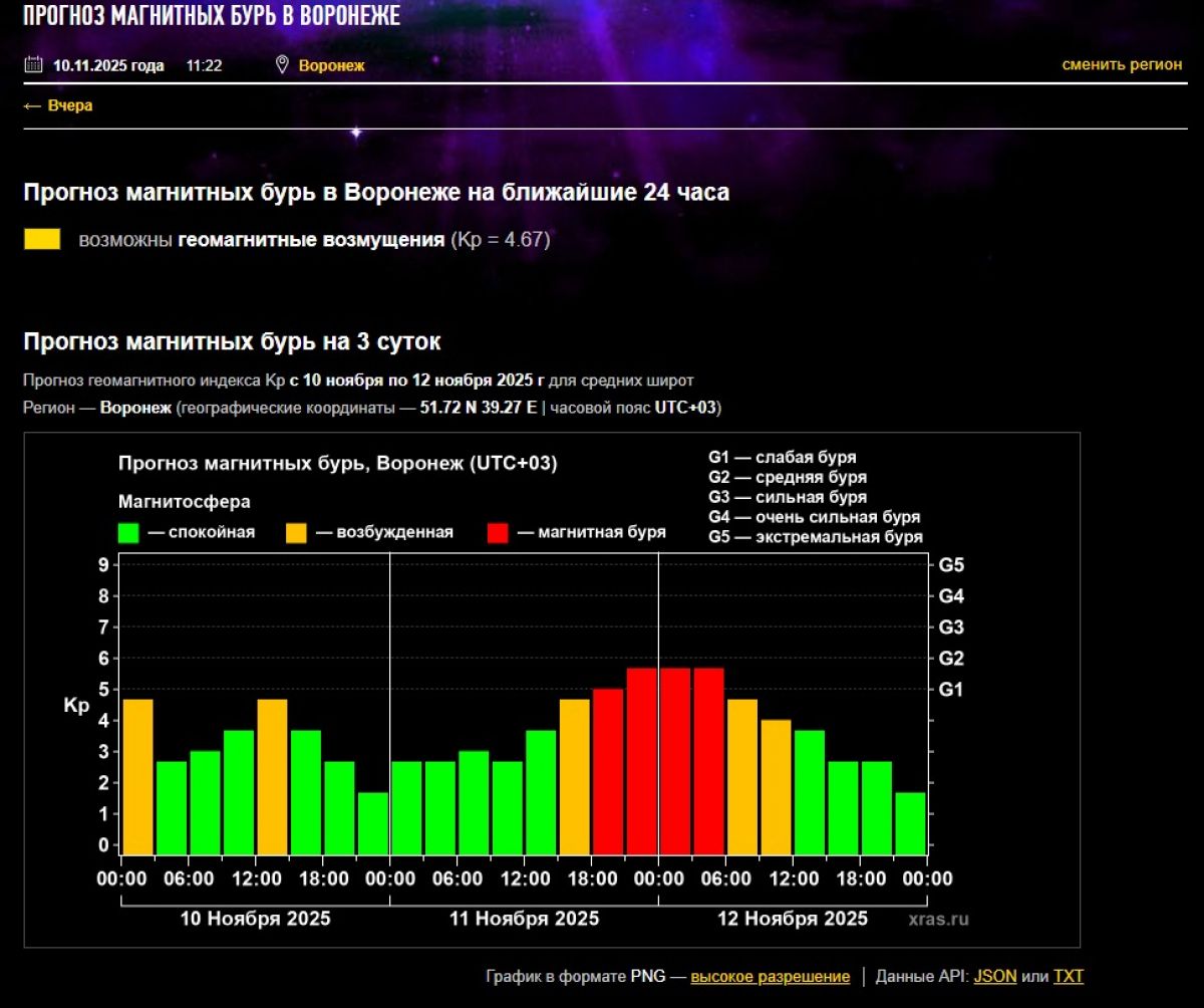 Ночная магнитная буря ожидается в Воронеже 12 ноября