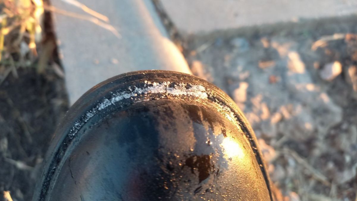 - Вот так выглядят ботинки, после того, как прошел по траве. Это все же не снег, а изморозь, но она показала, что и до зимы не далеко. Изморозь появилась на крышах машин, земле, остановках, щитах ограждения Остужевской эстакады, - объяснил воронежец.