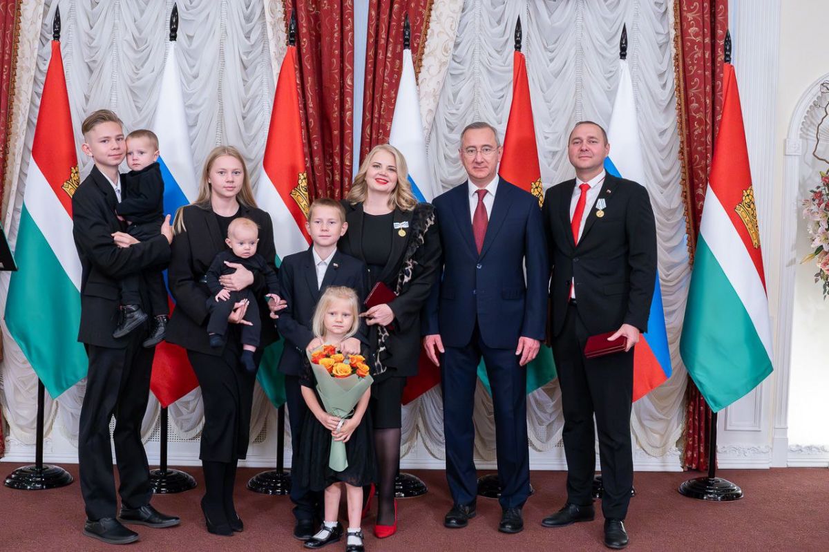 В Калужской области прошла торжественная церемония награждения, на которой особо отметили семью Петровых. Супругам Андрею Геннадьевичу и Людмиле Вячеславовне была вручена медаль ордена «Родительская слава» от имени Президента России Владимира Путина.