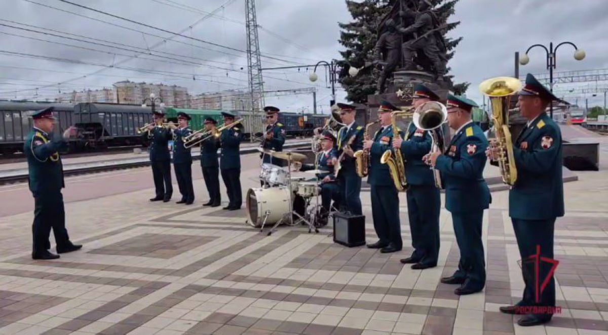 Тульский оркестр Росгвардии исполнил кавер на популярную песню «Поезда» Жени Трофимова и группы «Комната культуры» в символичном месте – Московском вокзале. Видео поделилось Управление Росгвардии по Тульской области.