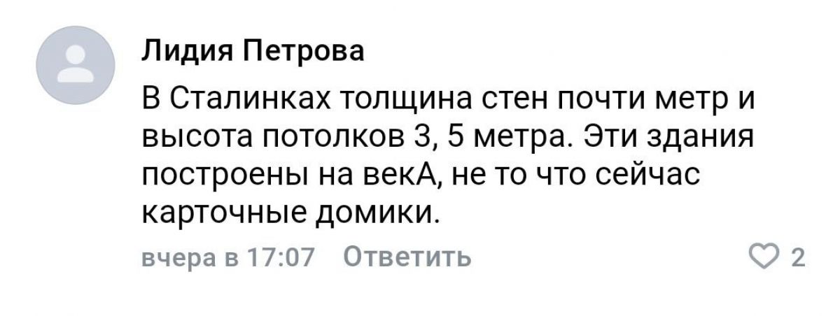 - С карточными домиками сравнили новостройки воронежцы. По мнению горожан, "сталинки" с потолками высотой 3,5 метра и стенами в метр толщиной, были построены на века, в отличие от современных зданий.