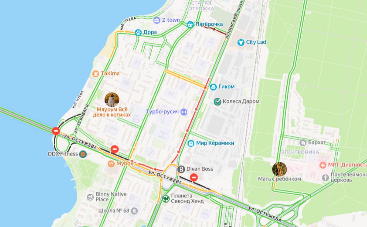 Причем сложную дорожную ситуацию на участке дороги подтверждают и данные сервиса "Яндекс Карты". Там Остужева "желтеет" и "краснеет".