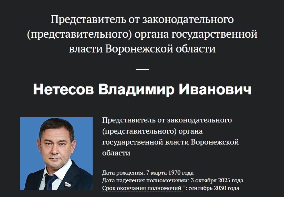 Воронежский сенатор Нетесов получил удостоверение и вошел в комитет Совфеда