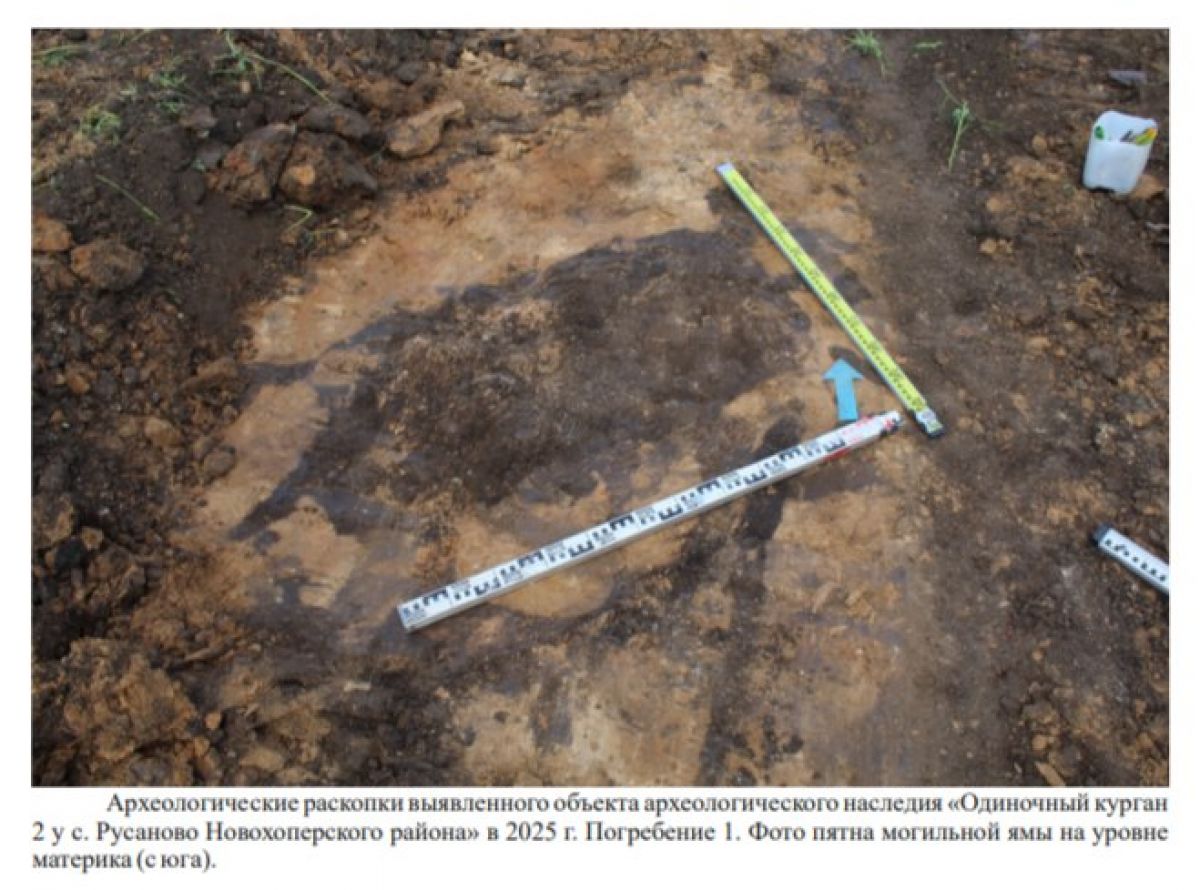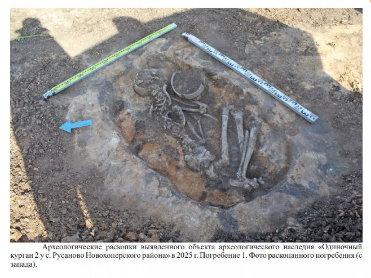 Во время раскопок на территории объекта культурного наследия «Одиночный курган 2 у с. Русаново Новохоперского района» археологи обнаружили погребение срубной археологической культуры бронзовой эпохи (XVIII—XIII века до н.э.). Об этом рассказали представители экспедиции ООО «Центр охранных археологических исследований».