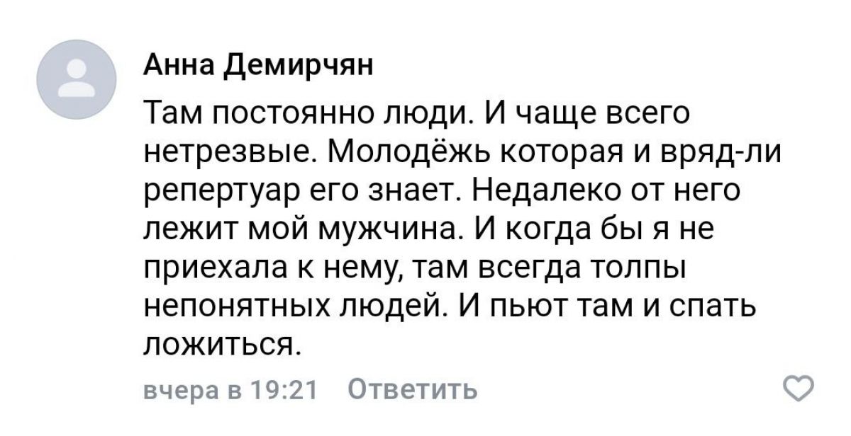 - На пьяную шумную молодежь на могиле Юрия Клинских пожаловалась горожанка. Женщина рассказала, что не может навестить покойного супруга, потому что недалеко от его могилы спят пьяные люди.