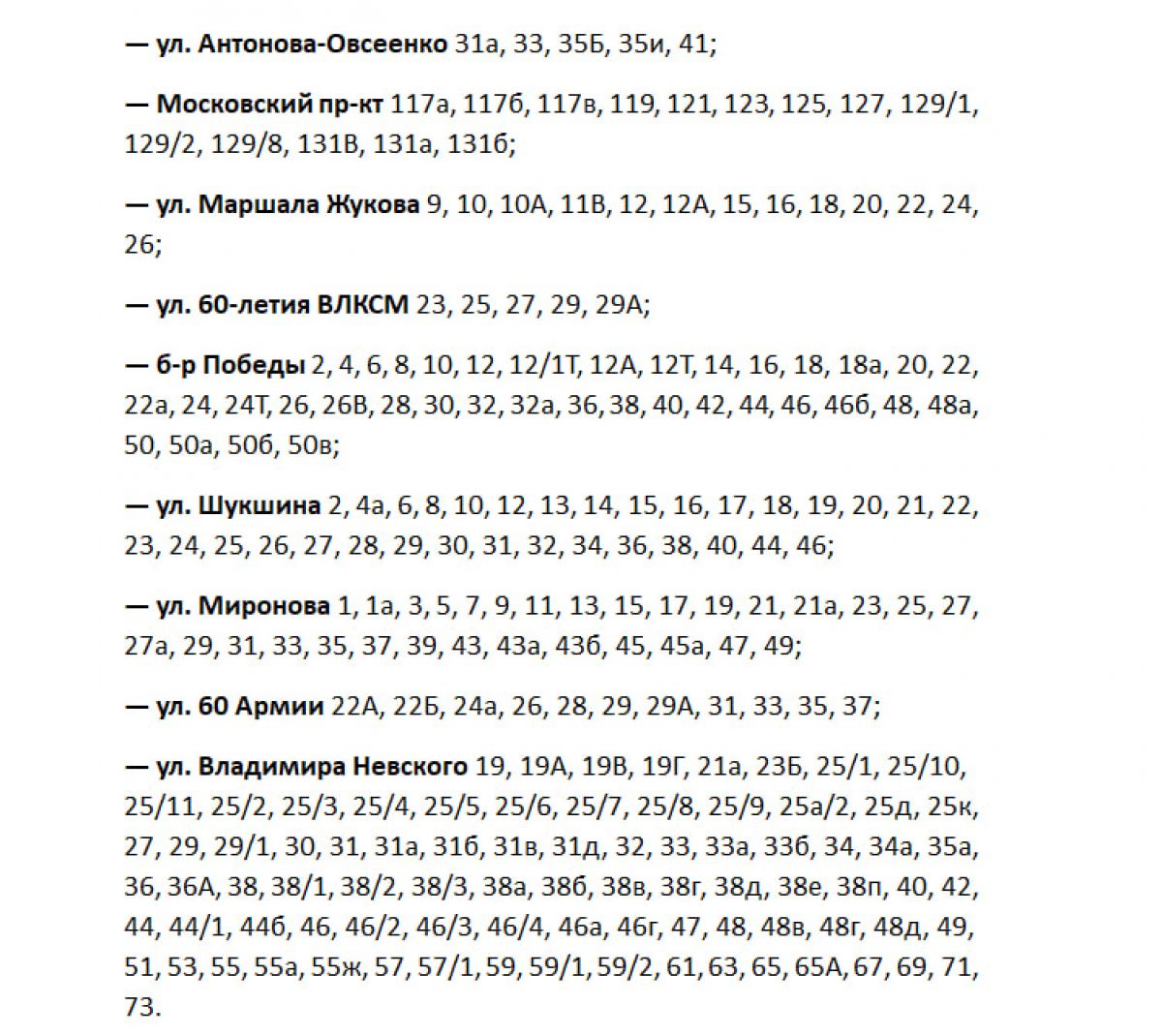 На время ремонта подачу холодной воды ограничили по следующим адресам: