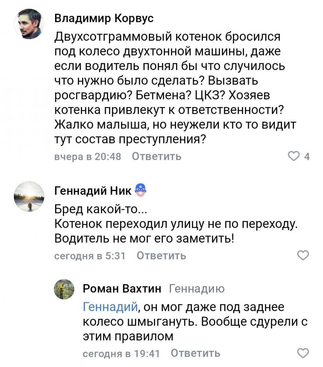 - Водителя, сбившего котёнка на автомобиле, поддержали воронежцы. По мнению пользователей, мужчина не мог повлиять на ситуацию