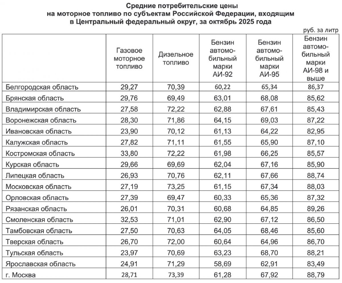 В октябре 2025 года стоимость топлива в Воронежской области превысила показатели Москвы и Подмосковья, сообщают данные Воронежстата. По отношению к сентябрю цены в регионе выросли на 1,3%.