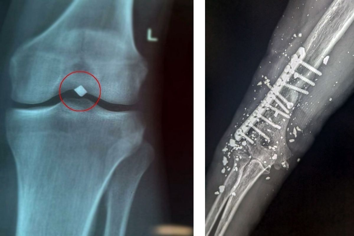 Один из пациентов - 22-летний парень. В июне 2025 года он получил серьезное ранение осколком - пробил надколенник насквозь, прошел через полость коленного сустава и застрял всего в паре миллиметров от крупного сосудисто-нервного пучка нижней конечности. Пациента беспокоили постоянные боли в области инородного тела. Осколок оказывал давление на нерв, вызывал стойкий дискомфорт и нарушение функции левой нижней конечности.