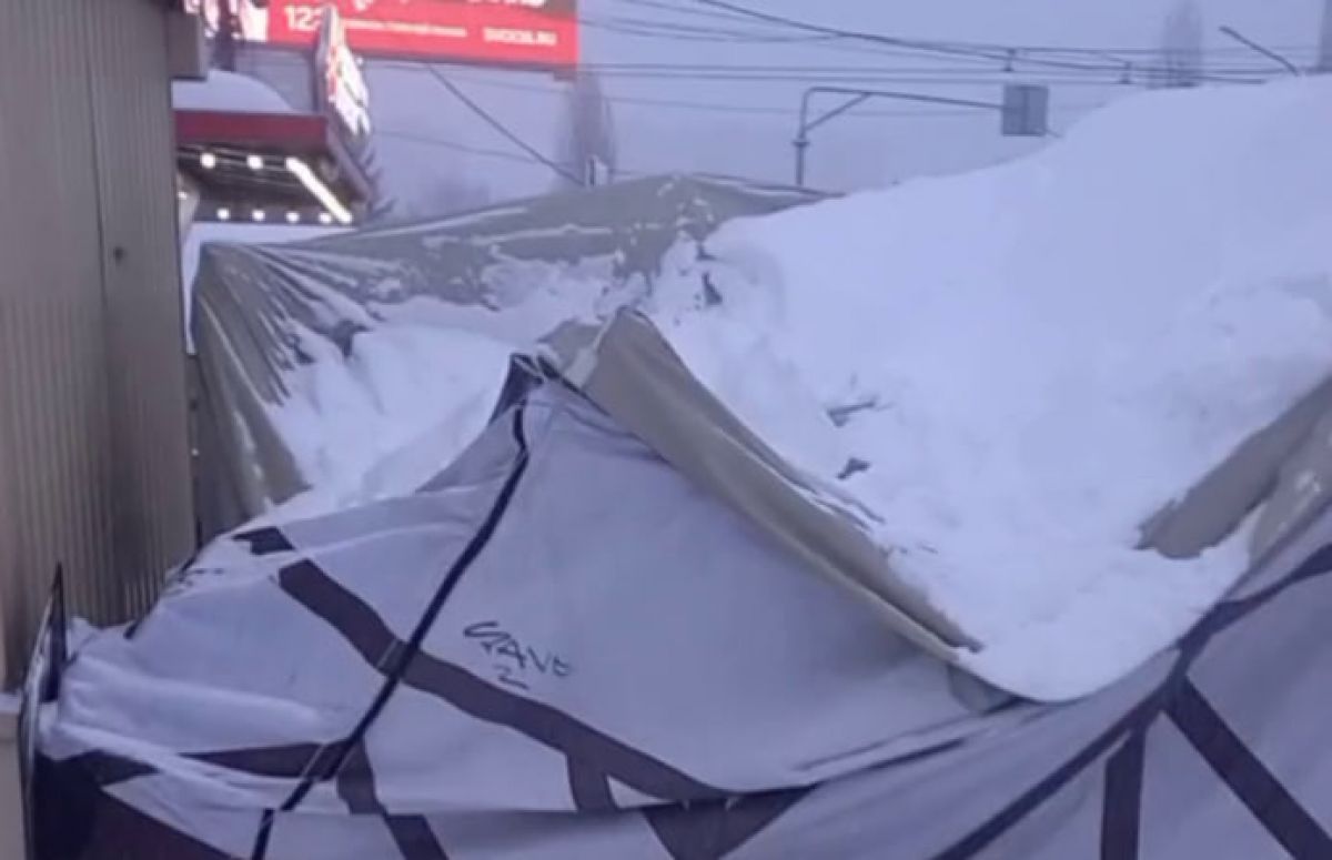 Однако снег несёт опасность не только для транспорта. На улице Жукова стихия показала свою силу: тяжесть мокрого снега не выдержала уличная торговая палатка. К счастью, по предварительной информации, обошлось без пострадавших.