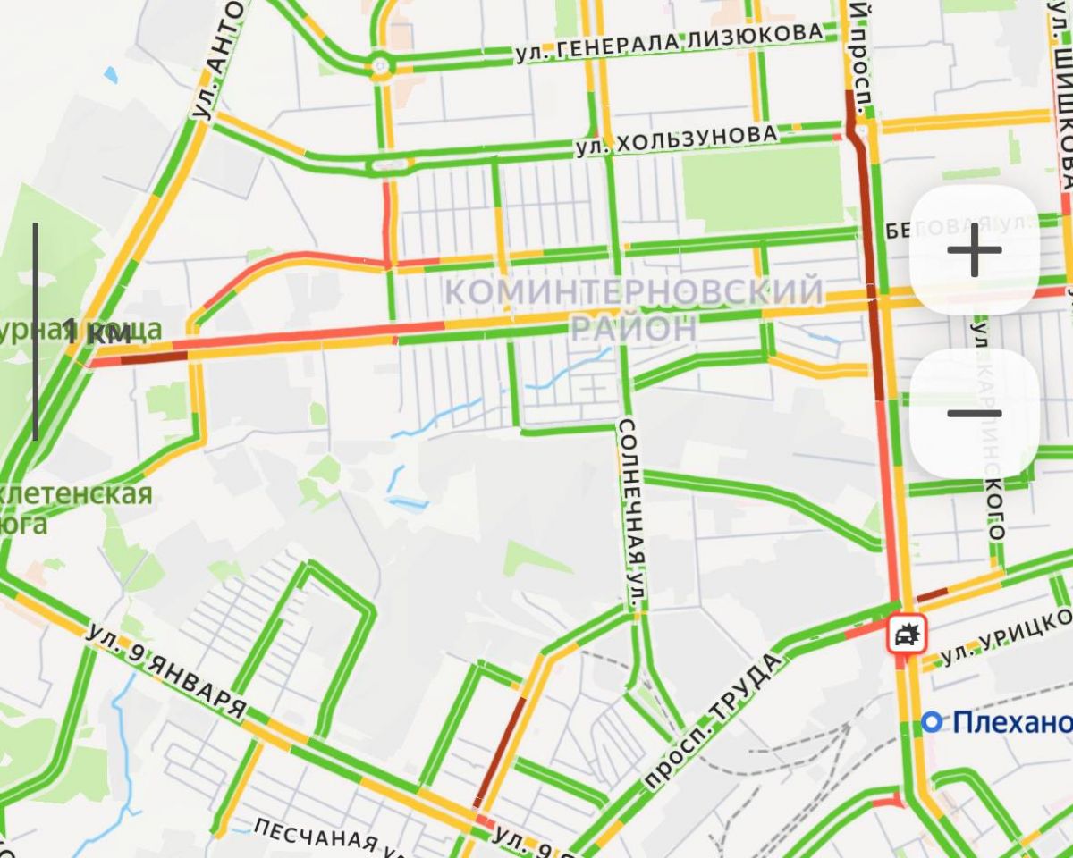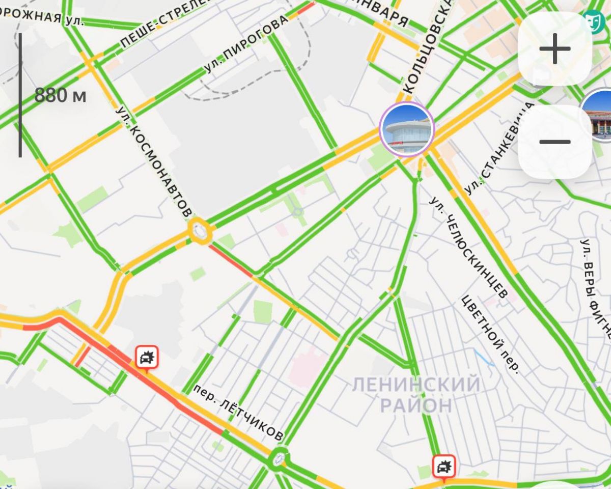 Заторы есть и на улицах 9 Января, Машиностроителей, Кольцовская, Плехановская, Кирова. Из-за ДТП скопление автомобилей и на улице Матросова, Грамши, Пеше-Стрелецкая, Степана Разина.