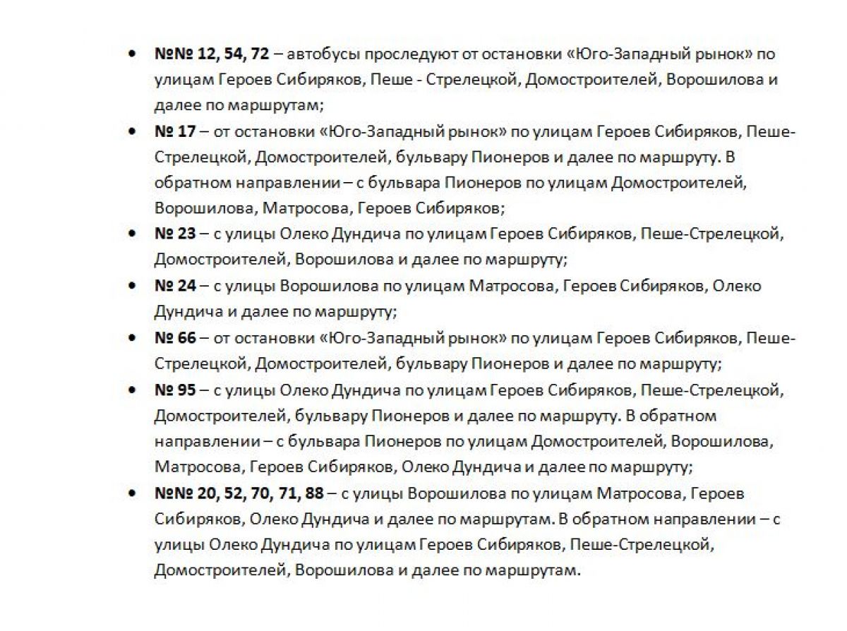 Власти уточнили, что на время перекрытия улицы будет скорректирован маршрут ряда автобусов, проходящих по данному участку: