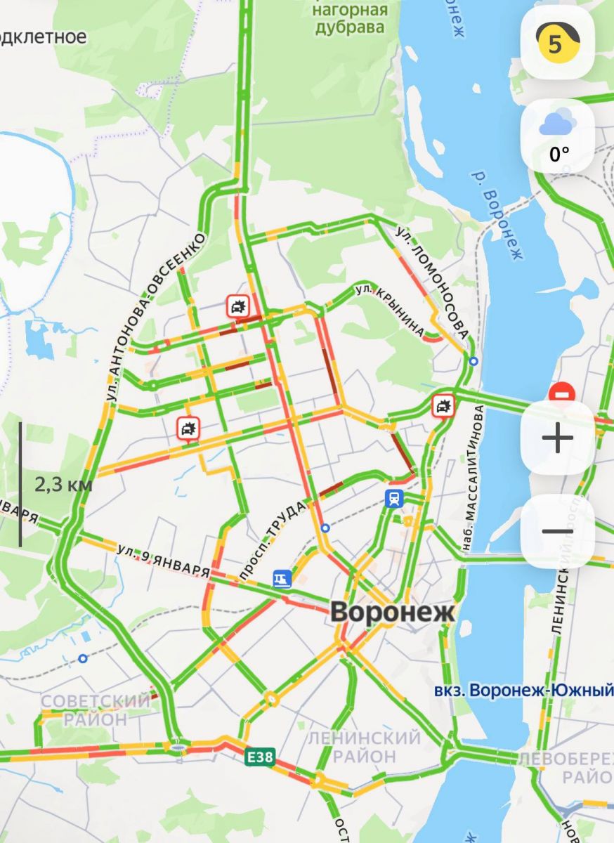 Тяжелый понедельник: 6 аварий парализовали Воронеж к 9 утра