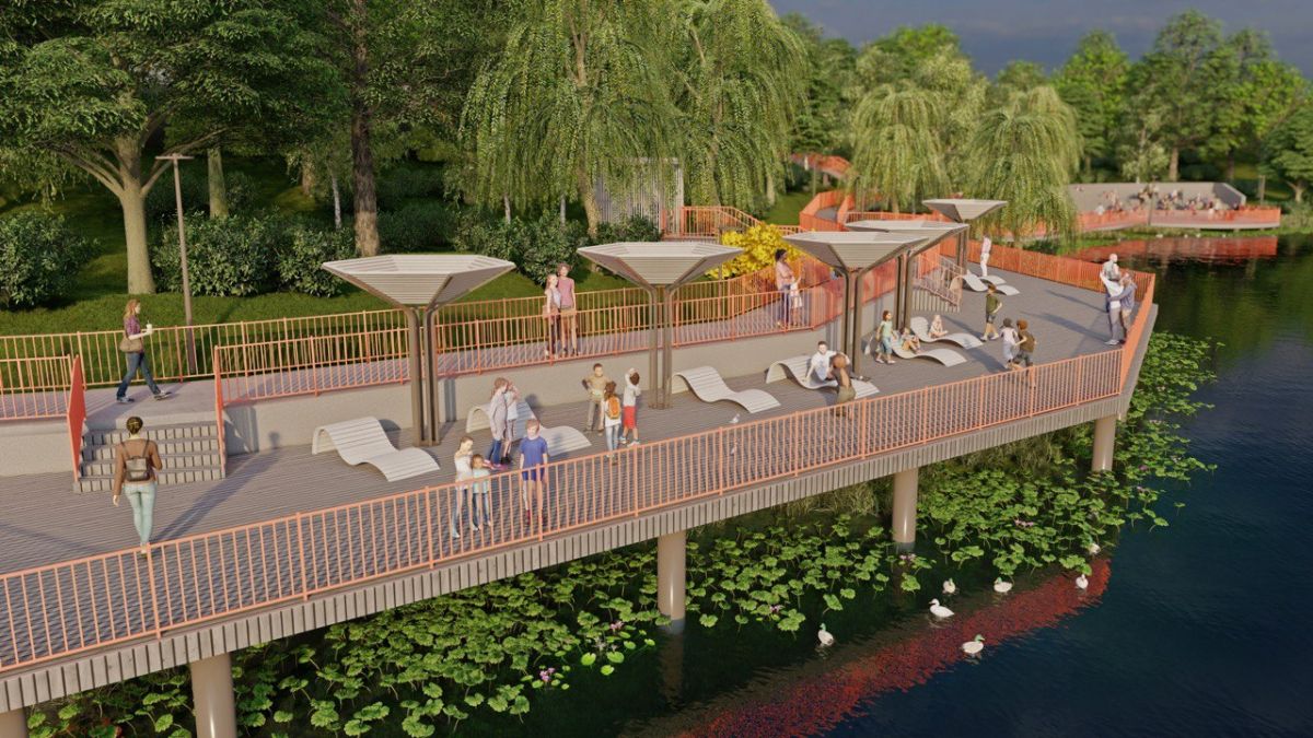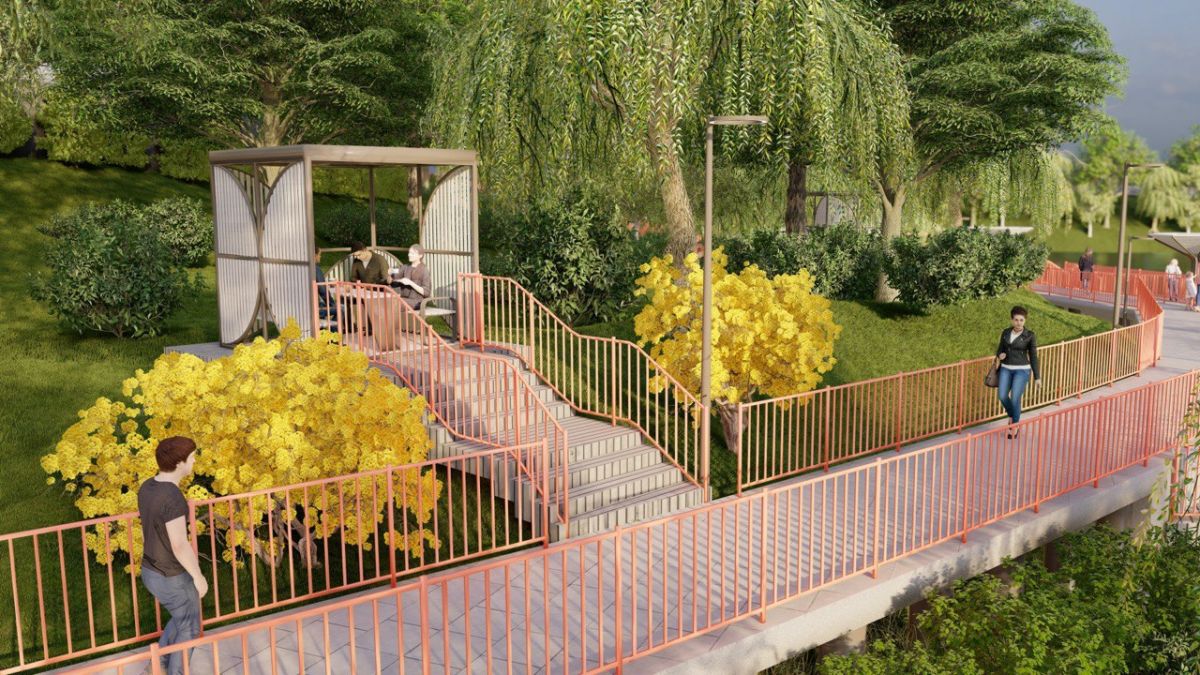 Подрядчику предстоит организовать зону отдыха у воды на винтовых сваях, обустроить лестницы и дорожки с пандусами, построить беседки для отдыха, оборудовать прогулочные тропы, возвести амфитеатр со сценой у воды, провести монтаж канализации и сетей наружного освещения, а также провести озеленение территории.