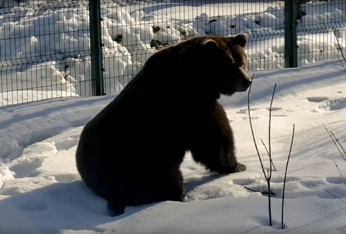 Знаменитый авиамедведь Мансур, живущий на аэродроме Орешково в Калужской области, вышел из зимней спячки в минувший понедельник, 9 марта. Спустя примерно три месяца отдыха косолапый начал изучать свой заснеженный вольер.