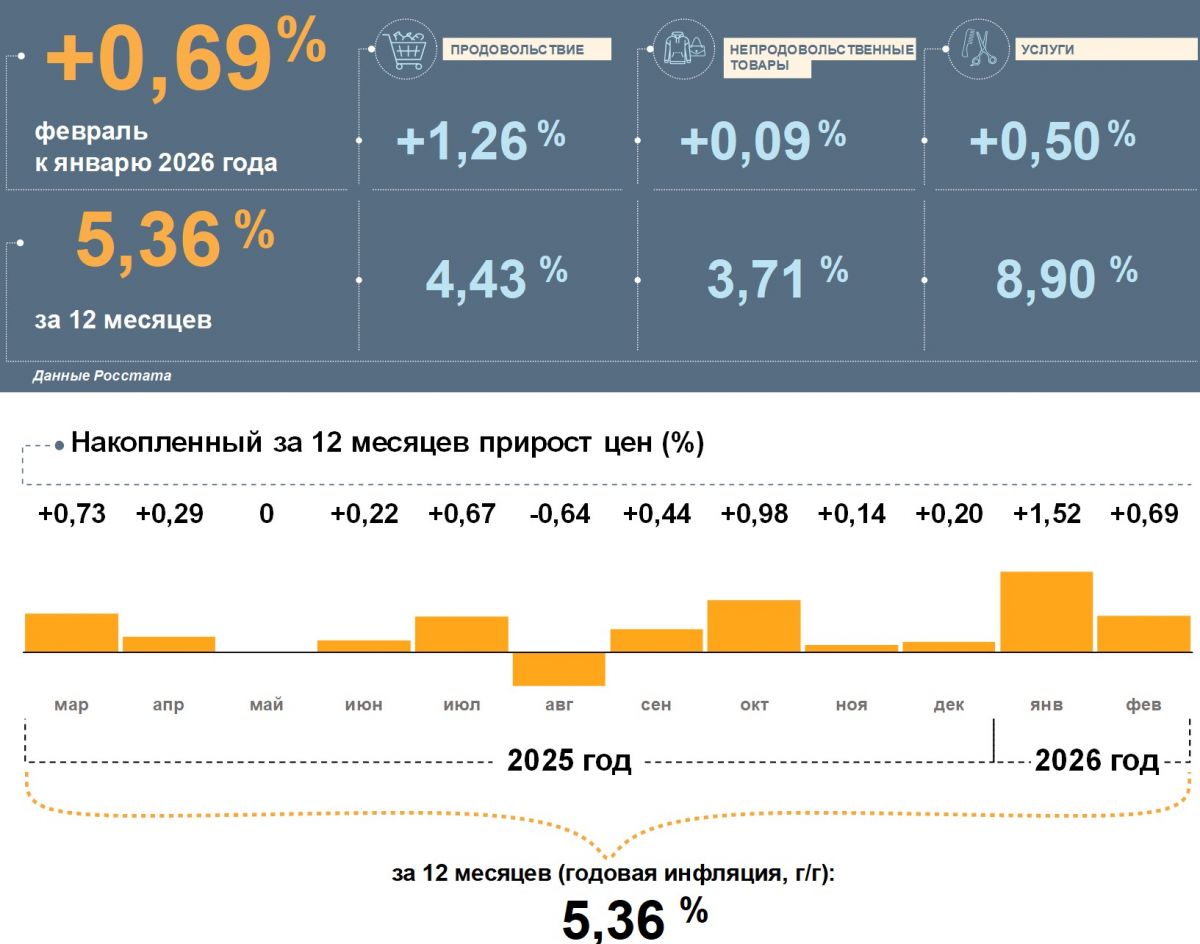 В целом годовая инфляция в регионе снизилась до 5,4%, что ниже общероссийских 5,9%. По оценке Банка России, в 2026 году она составит 4,5–5,5%, а с 2027 года стабилизируется около 4%.