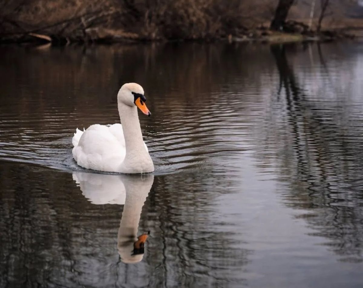 Фотограф Артем Зелюкин опубликовал в соцсетях фотографию лебедя, который позировал ему на одном из водоемов Долгоруковского округа.