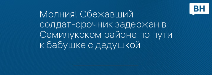 Молния! Сбежавший солдат-срочник задержан в Семилукском районе по пути к бабушке с дедушкой