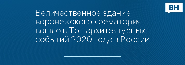 Новый воронежский крематорий вошёл в рейтинг главных событий в российской архитектуре 2020 года по версии портала «Медуза».